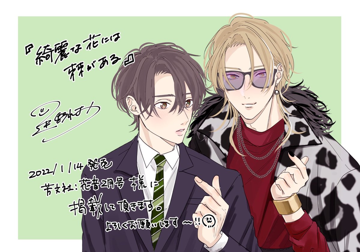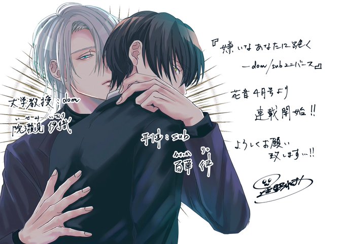 【お知らせ】 花音4月号様より新規連載を始めさせていただきます。 タイトルは『嫌いなあなたに跪く-Dom/Subユニバース-』です。 犯罪プロファイリングをテーマにした 教授(元師)×刑事(元生徒)です。 よろしくお願いいたします🙇✨