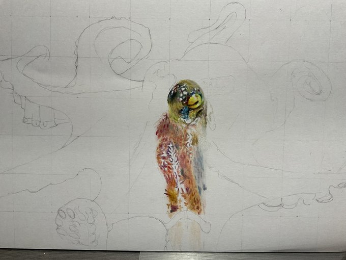 色鉛筆でタコ描きました! 鉄筆も白ペンもコピックもなし、本当に色鉛筆だけです。 #色鉛筆画