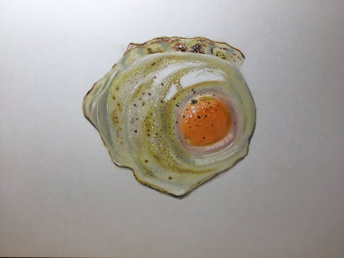 7 75 #アナログ絵 色鉛筆で描いた目玉焼き 23/08/18 12:09