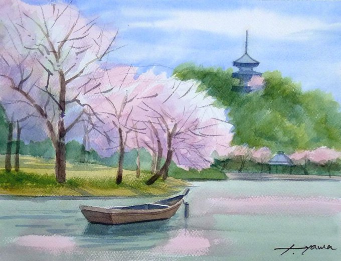 #水彩画 #透明水彩 #風景画 #スケッチ #Watercolor #Landscapepainting #Watercolorpainting #sketch 仲間と、#三渓園 にスケッチに出かけました。今年は開花が早かったので、桜は終わっているかなと諦めていたのですが、なんとか間に合いました。