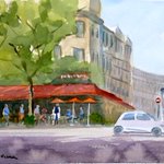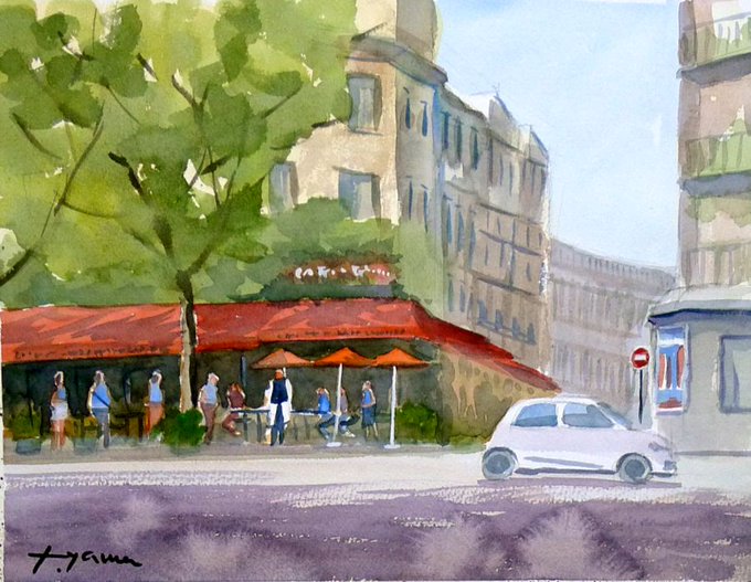 #水彩画 #透明水彩 #Watercolor #Watercolorpainting #パリの街並み #風景画 #Landscapepainting 張先生の水彩画教室での作品。人物の描き方で、大変勉強になりました。