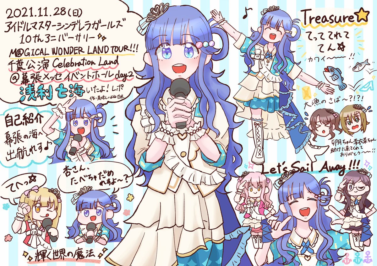 未だに余韻に浸りすぎてセレブレーションランドに国籍移そうかなと思ってる 浅利七海Pが浅利七海レポを描きました、七海ちゃんもほの花さんもスタッフさん達も今まで応援してきたプロデューサーさん達も本当にありがとう……!! #シンデレラ10周年_千葉day2
