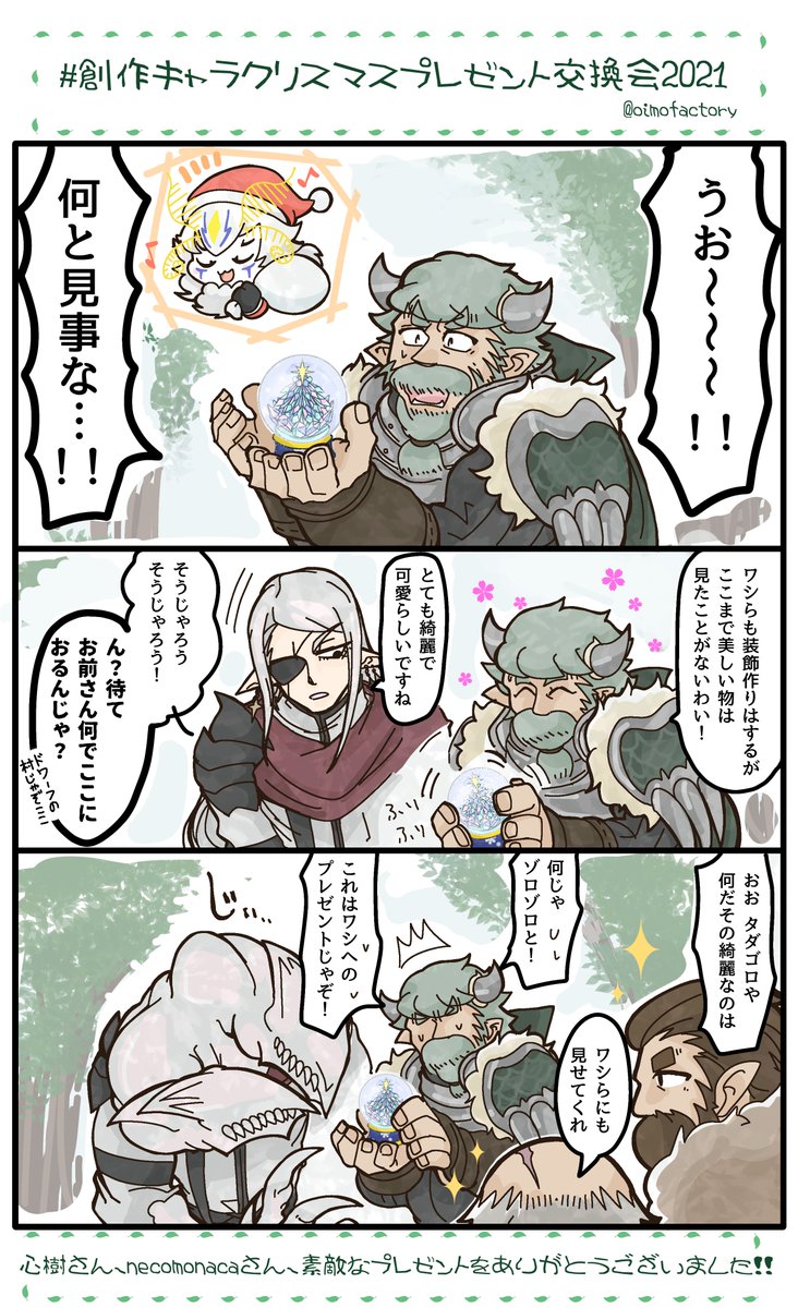 @necomonaca necomonacaさんこんばんは!ゾルさんの創作キャラクリスマスプレゼント交換会にて、うちのタダゴロが心樹さんからのプレゼントを受け取りましたので、反応絵を描かせて頂きました! 素敵なプレゼントをありがとうございました😊💓 #創作キャラクリスマスプレゼント交換会2021
