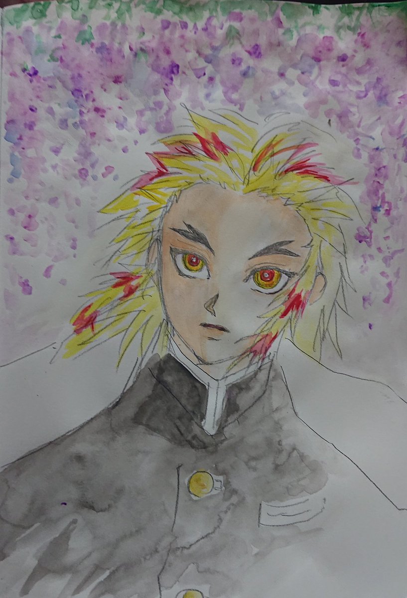 #鬼滅の刃 #鬼滅の刃絵描きさんと繋がりたい #鬼滅の刃好きさんと繋がりたい #鬼滅の刃イラスト #煉獄杏寿郎 #煉獄好きさんと繋がりたい 今日も、今日とて、れんごくさん。 水彩毛筆使ってみた。 紙がダメだったな…。
