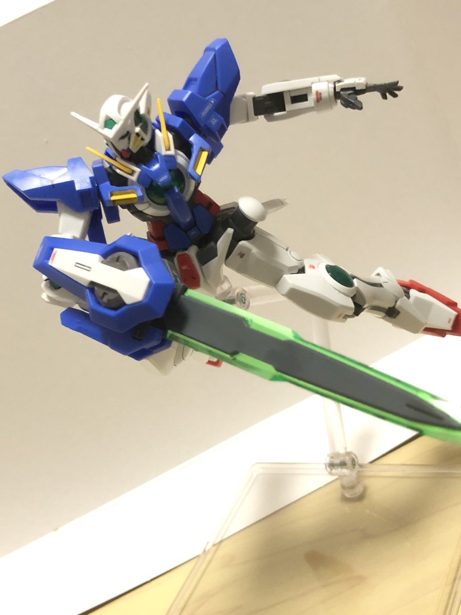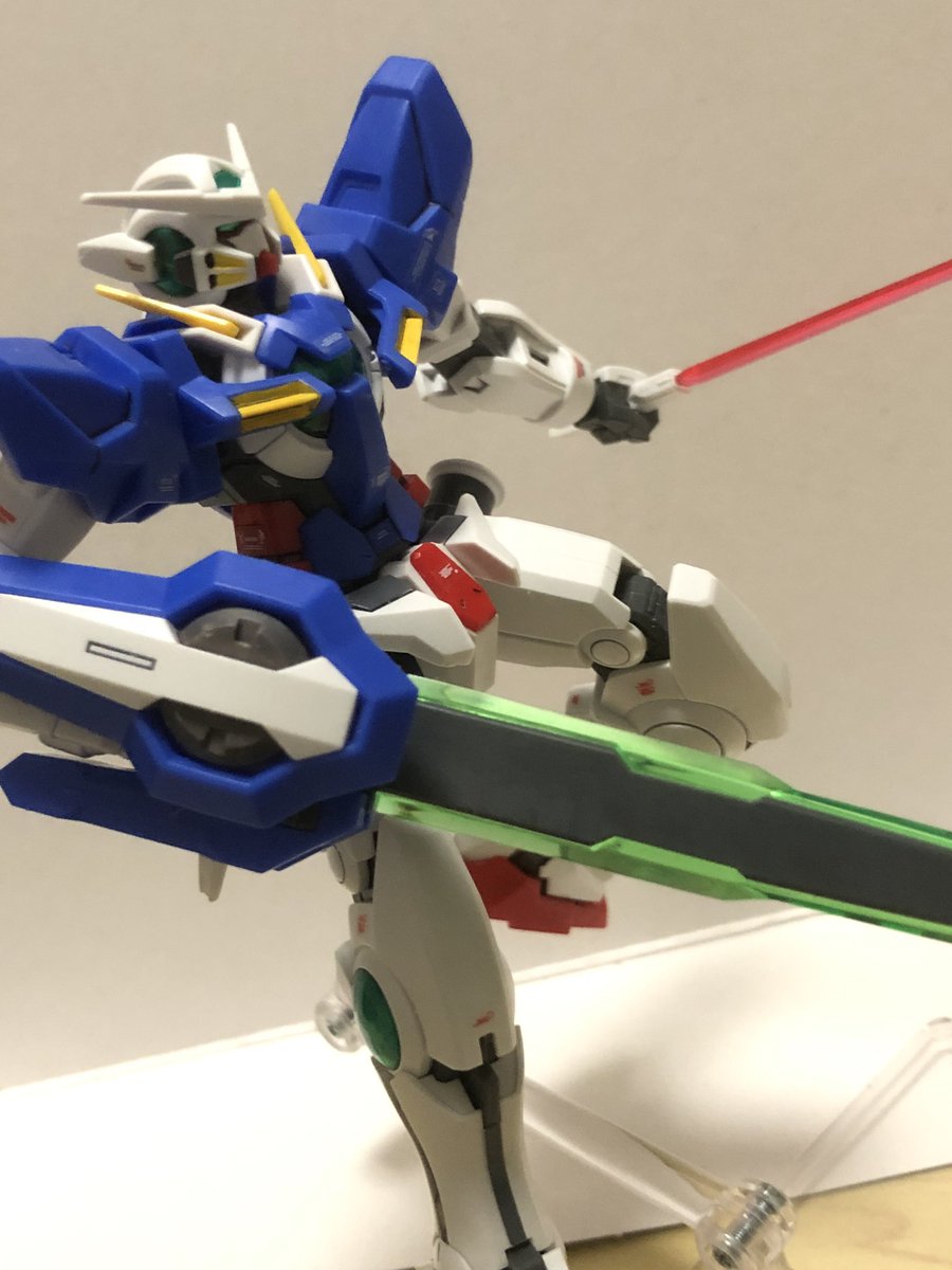 先日、プルトーネをガンダム00見ながら組み立てたら、エクシアも組みたくなったのでリペア2を購入からの組み立て(だから積みが減らんのよw) 少し頑張って部分塗装と上腕の穴埋めと余ってたデカールをペタリ #ガンプラ
