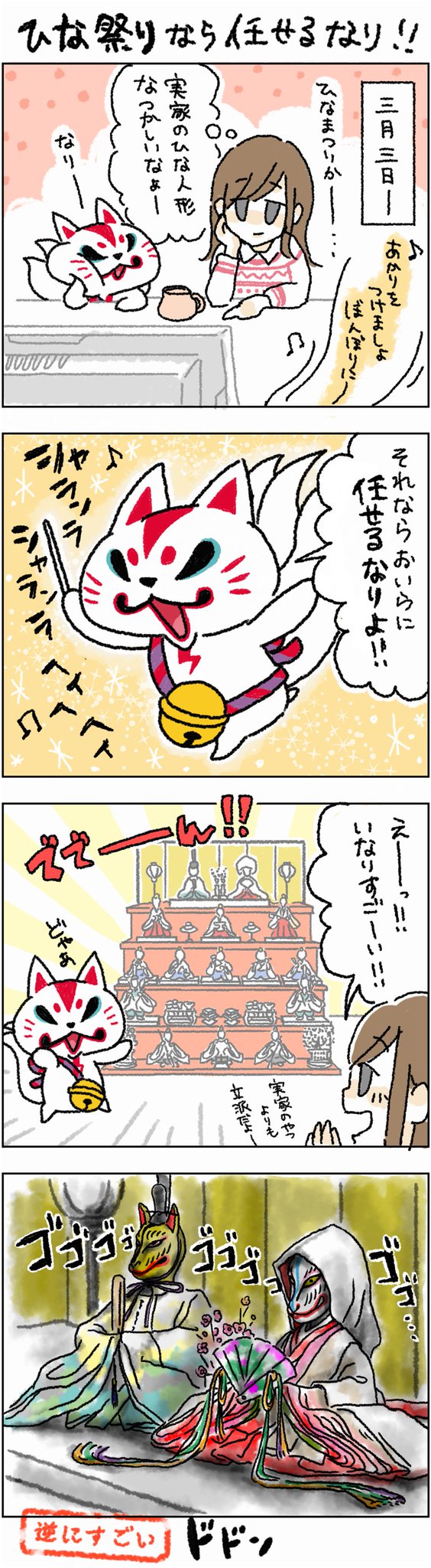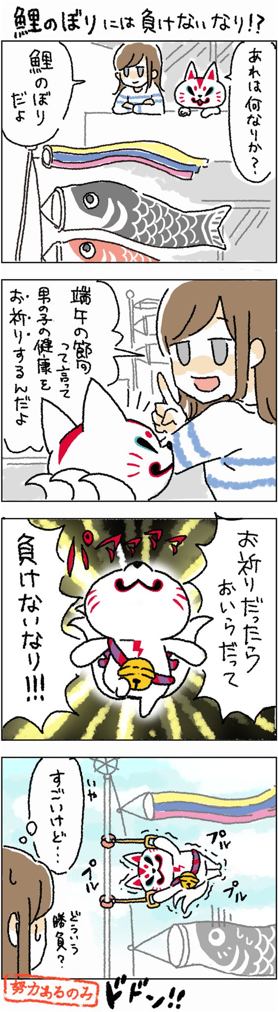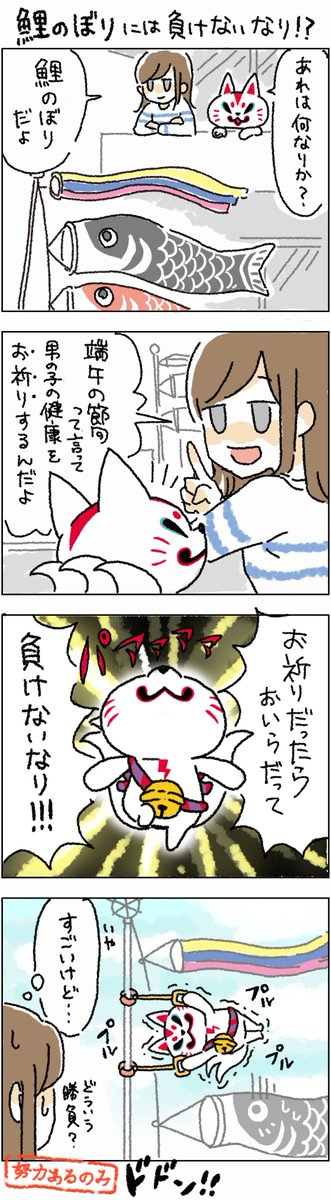 鯉のぼりには負けないなり?! #がんばれおいなりさん #OL女子 #こどもの日 #端午の節句 #鯉のぼり #ビーサイドレーベル #bsidelabel #4コマ漫画 #漫画が読めるハッシュタグ