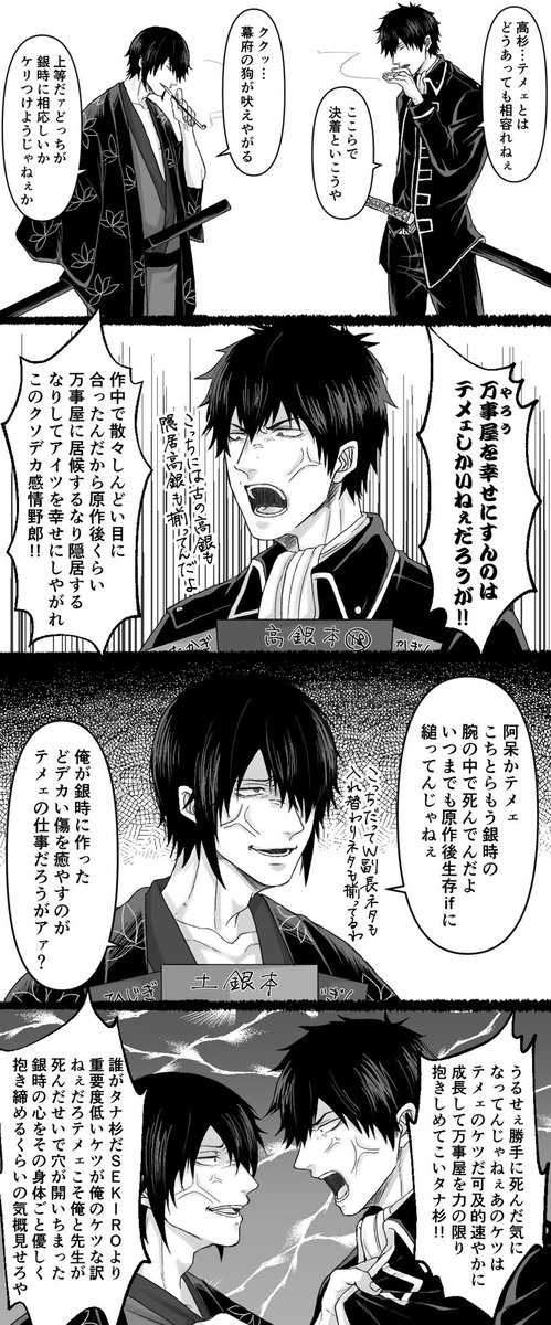 これは大遅刻かました高杉生誕絵とついでに補足のJOY4と高銀 まぁ8月はずっと高杉の誕生日みたいなもんだからセーフセーフ お祝いごとなんてナンボあっても良いですからね