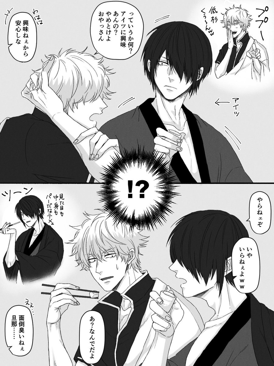 199 804 高銀推しの土方と土銀推しの高杉とずや推しの坂田 ここまで描いといてあれなんですけど多分普通に杉は高銀過激派だし、土は土銀過激派だと思います 21/08/02 22:47