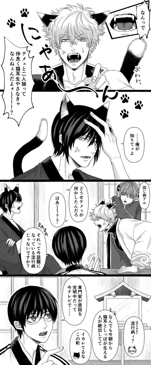 3日後に元に戻った高銀 2022年は🐈年なのでいつでも🐈耳を描いて良い年なのだ…… 最後のコマは昨日の夜のコトを思い出してるはっぴ〜な高杉です