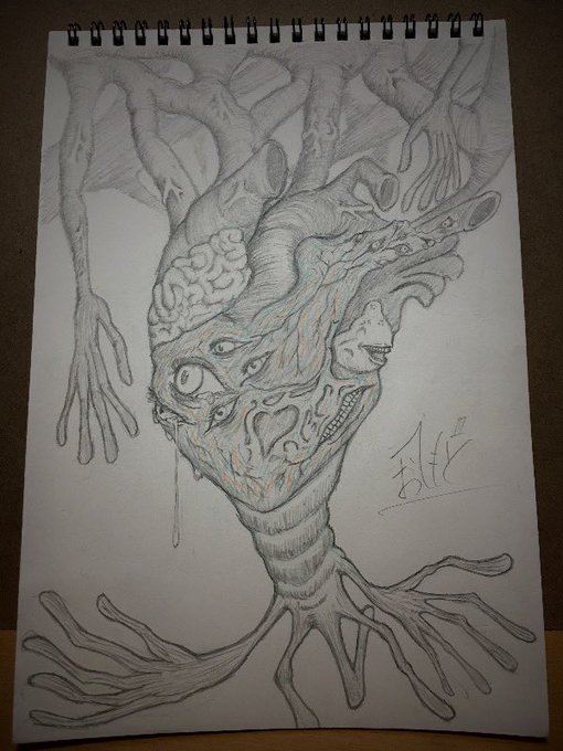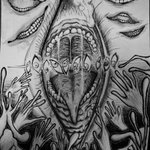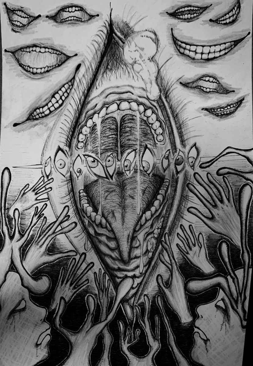 #新年早々の創作クラスタフォロー祭り ぼくも忘れられないように 人ではない"ナニカ"を描いてるアナログモノクロ絵描きです 人外万歳! 👁と✋と👄が好きでよくモチーフにしてます 少しでも、誰かの心に引っかかるような作品を作れたらいいな。 #人外万歳