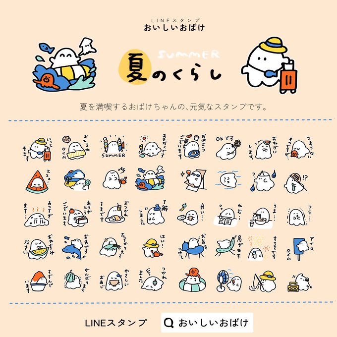 【お知らせ】 スイカやアイスやおいしいものに囲まれた、楽しい夏のLINEスタンプができました☀️ ˏˋ おいしいおばけ 夏のくらし ˎˊ 🍉販売ページ🌽 ▶︎ line.me/S/sticker/2372…