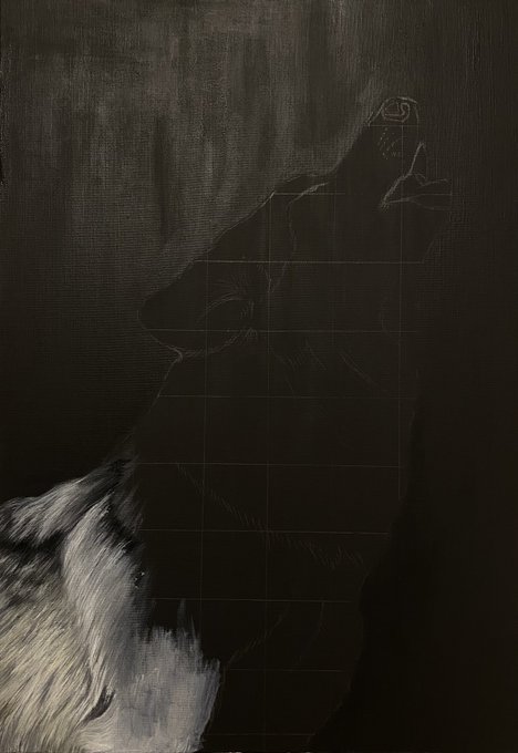 All done! "Wolf🐺" size:M15(652×455㍉) 透明水彩絵具 縦長キャンバスは肩が凝る😵💫 #art #drawing #artwork #illustration #wolf #水彩画 #模写 #絵描きさんと繫がりたい