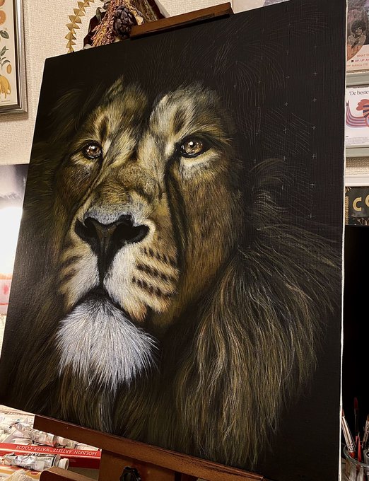 All done! "Lion" size:F10(530×455㍉) 透明水彩絵具 最近の絵の中で一番満足度が高いかも🦁 知人にプレゼントであげる予定でしたが、複製を渡すことになったので、早速部屋に飾ろうと思います🦁 沢山の方に見て頂けると幸いです! #Twitter文化祭2021 #秋の創作クラスタフォロー祭