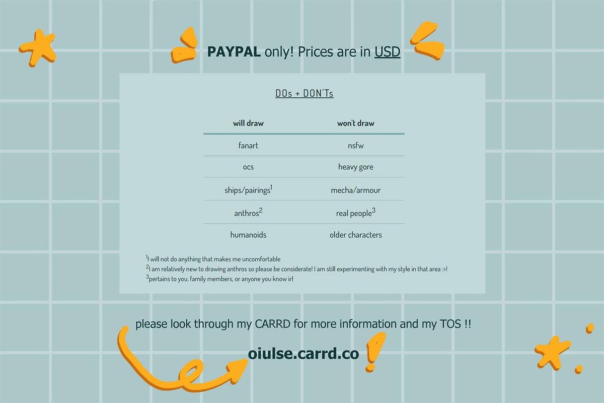 [rts are appreciated!] hello.. i realized i should’ve posted these on here too commissions open !! some things have occurred and i need some funds so ;; anything helps! please check my carrd (it will be in my bio) for more info on prices as well as my TOS! #commissionsopen
