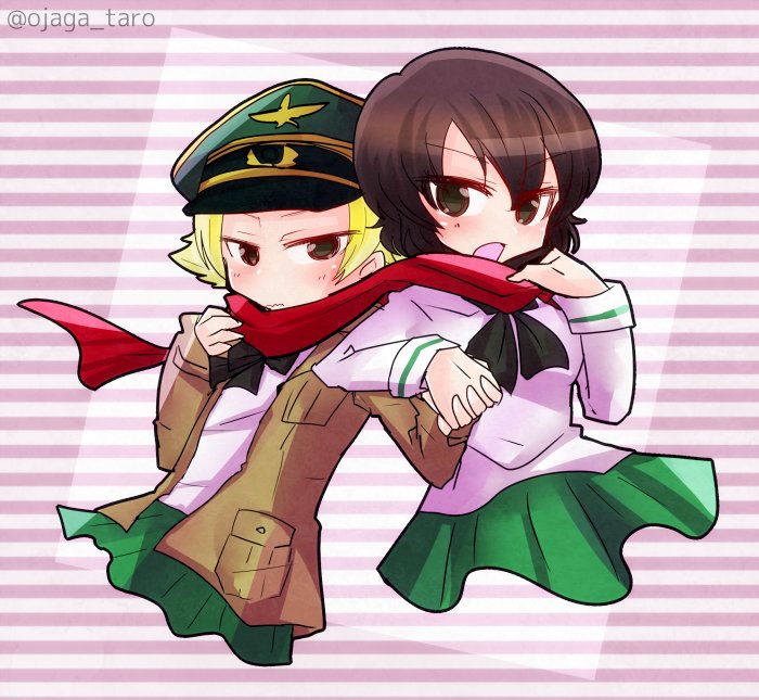 34 70 お題:カエサル カエエルの身長差とか関係性がすきです #ガルパン版深夜のお絵描き60分一本勝負 #ガルパン版深夜のお絵描き60分一本勝負_20160808 16/08/08 22:01