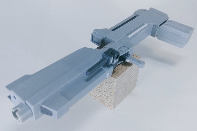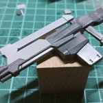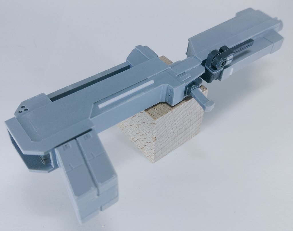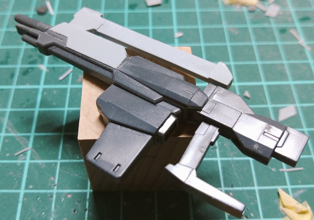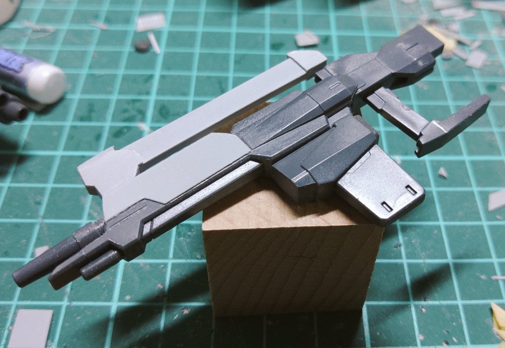 今日の模活。強化型ドッズライフルのキャリングハンドルっぽいのを制作。最初は2点支持にしようかと思ってたけど、分割を考えてハンドガード側での一点支持に。こういうのもアリでは( ˘ω˘)#ガンプラ