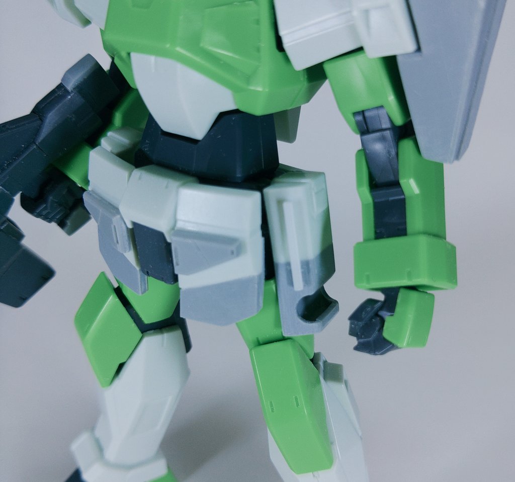 シャルドール・スパルタン進捗。頭部に口元の例のアレを追加。左サイドアーマーをグレネードラックぽくしてみました。これには後でプラ棒でグレネード作って取り付けておきます( ˘ω˘)#ガンプラ