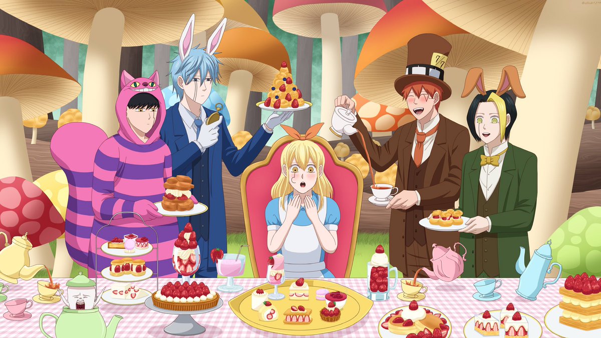#魔導師版深夜の創作一本勝負 キャラクター→アンサー・シンリ(全てのキャラクター) テーマ→ダイナーコラボ 片付けはこの人にお任せあれ ダイナーの制服にお洒落なスーツタイプがあったので、 マギルプに着て貰いたい…