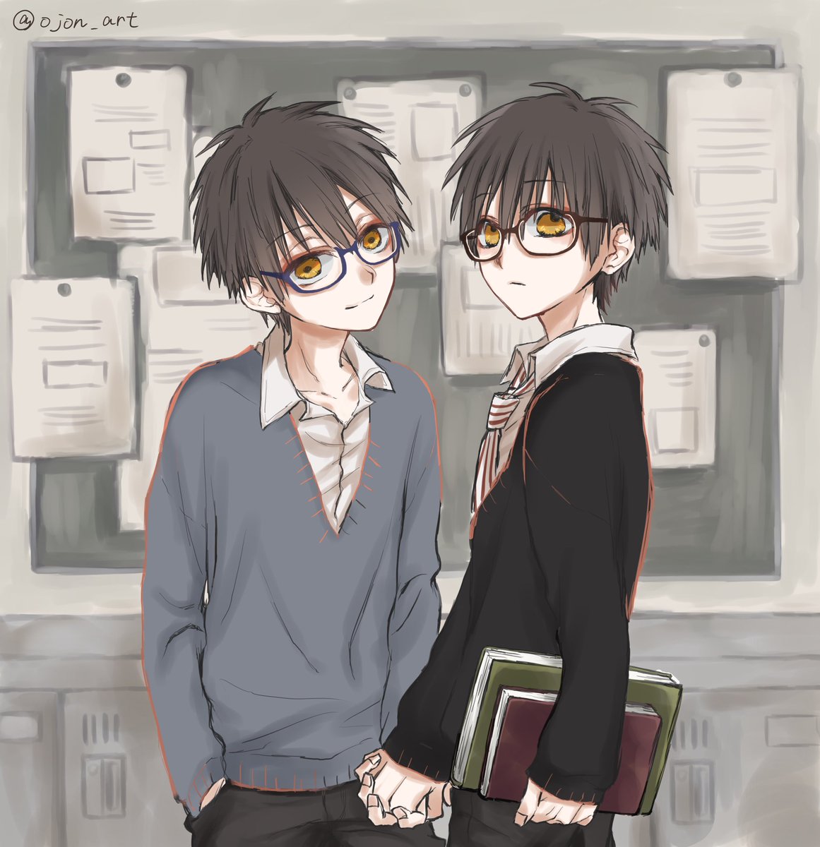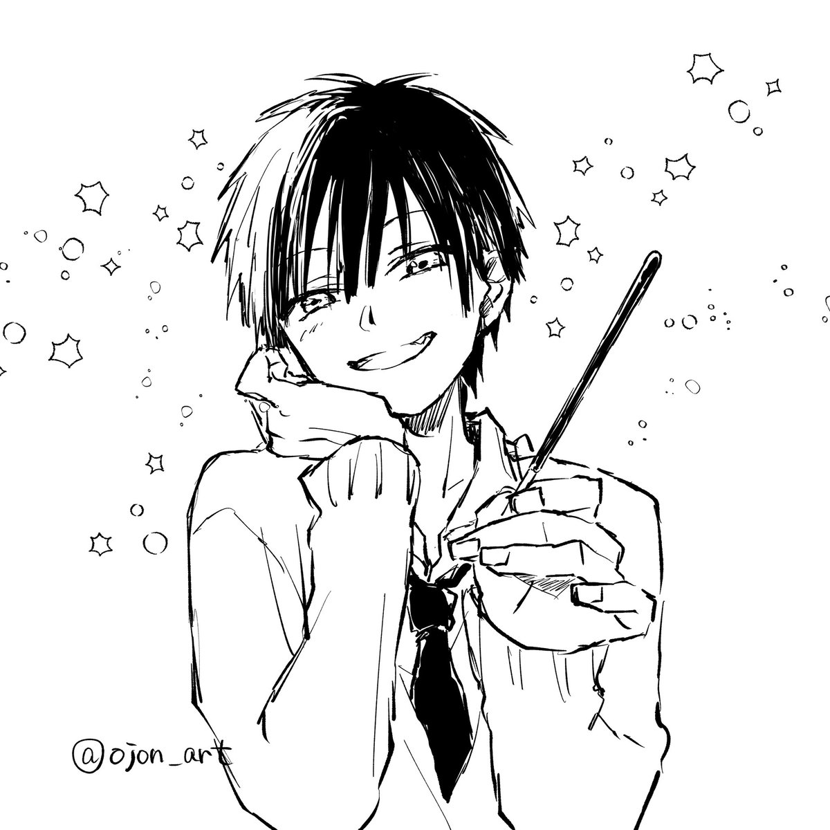 ありまさん( @ariarimap )の小説の挿絵で描かせていただいた柚木先生(in花子くん)、エソラ普くんです。 #エソラゴト合同誌再録