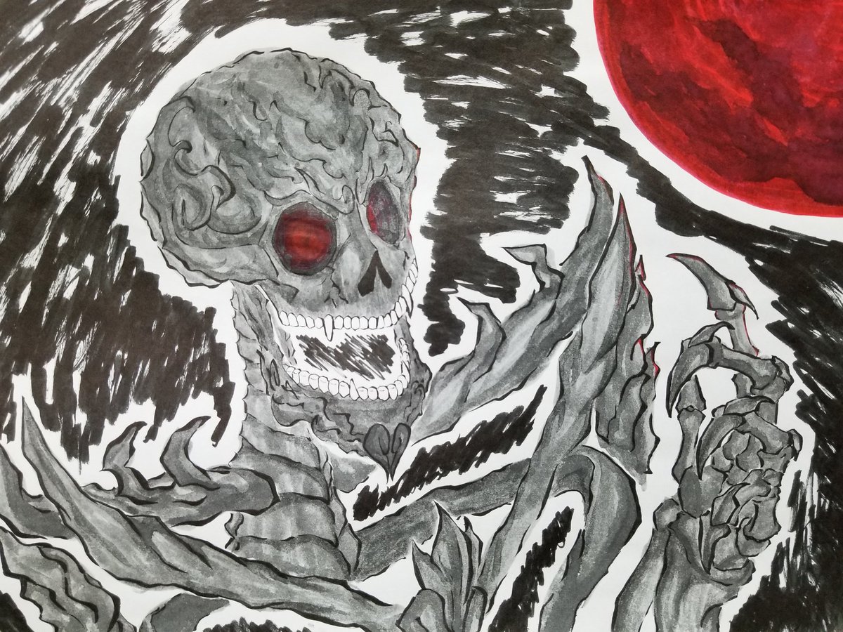 「がしゃどくろ」 コイツはなんとしても筆ペンで描いてみたかった!! いつか背景までしっかりかけるようになります( ˇωˇ ) #オセロニアート