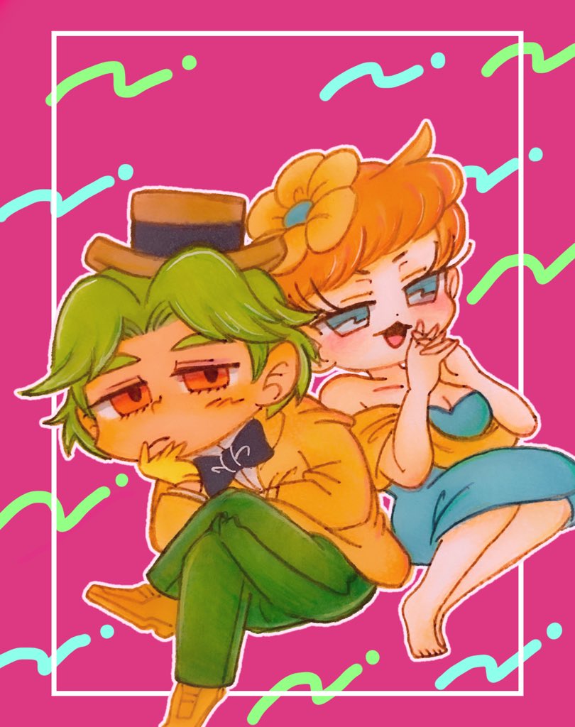 内さん( @__u__c__h__i )から擬人化ホセクラちゃんでした🦜🐿💕おくらちゃんの擬はほぼほぼ描くの初めてだったのですが楽しかった〜!ありがとうございました😊 #フォロワーさんの推しが描きたい