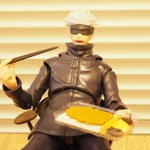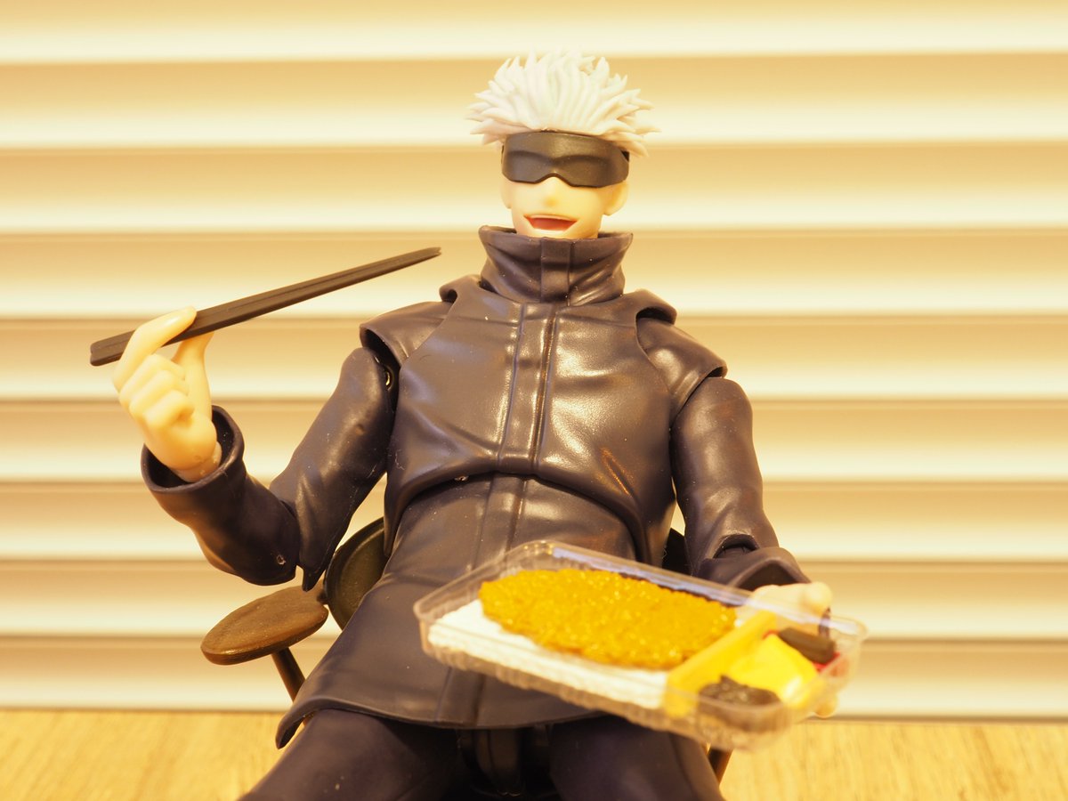 笑顔といい、箸を持たせやすい手といい、食べ物系ガチャ買ったら五条先生に食べさせたくなる。 #オモ写 #呪術廻戦