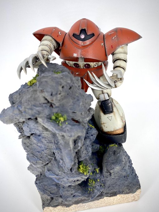 hgゴック完成 ガンプラの基本を勉強できるキットとしていつかは作ってみたかった😊 今回は新しい試みで、溶かし粘土を使いヴェネットを作成 #ガンプラ好きと繋がりたい #ガンプラの画像貼るとRTされると聞いて #ゴッグ #簡単汚し