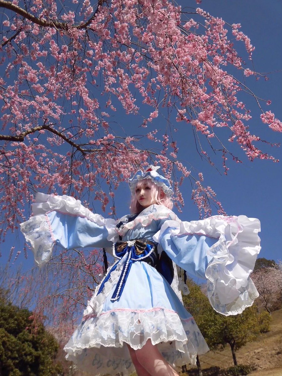 コスイベまでに幽々子さま衣装が奇跡的に間に合ったので行ってきました🌸 桜が良い咲き具合でとても綺麗でした✨ 頑張って作った衣装たくさん褒めていただいて嬉しかった🥺 カメラマンのみいたん先生ありがとう!! 主催者様、スタッフの皆様ステキなイベントありがとうございました✨ #コスカレード