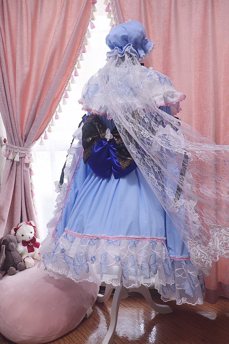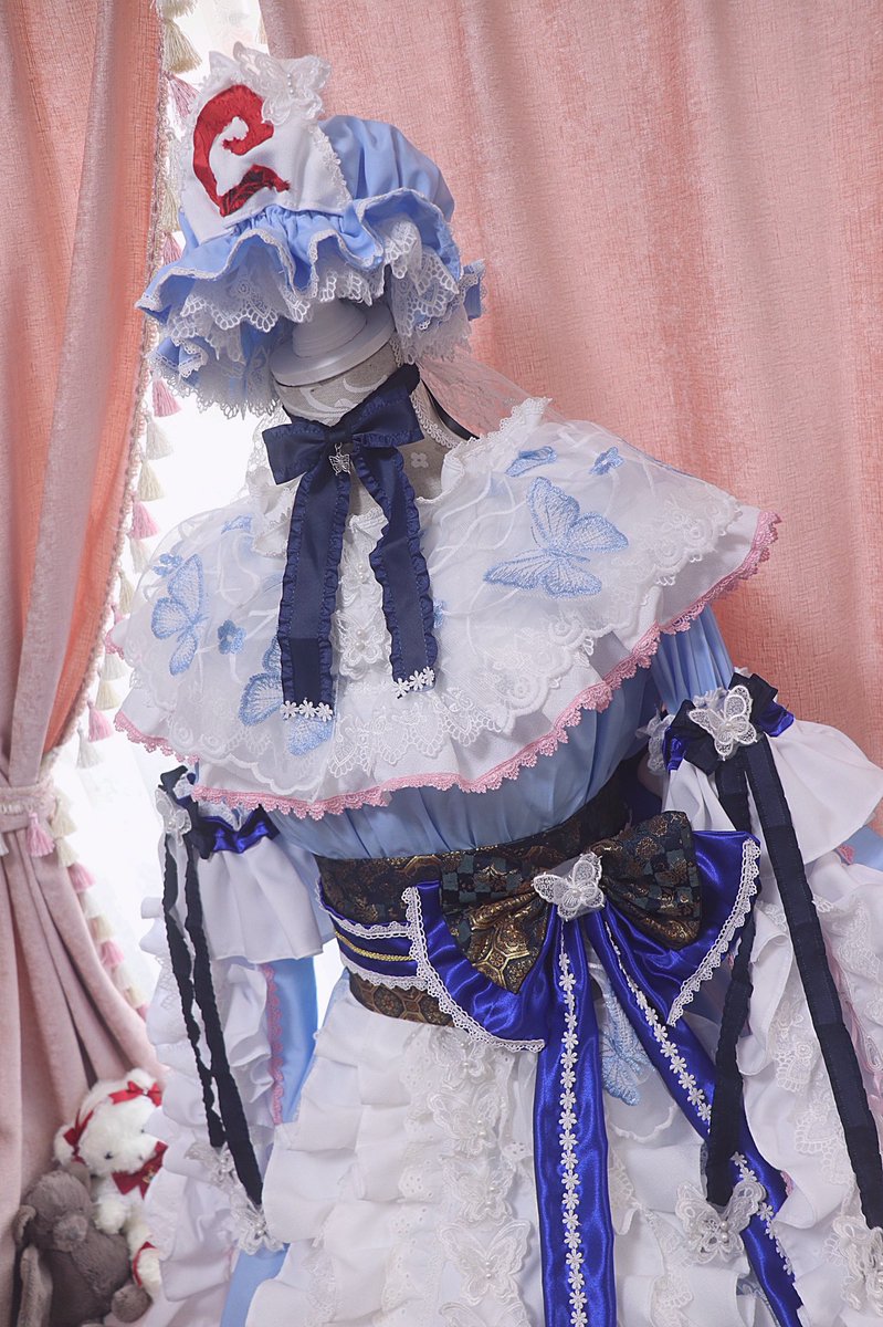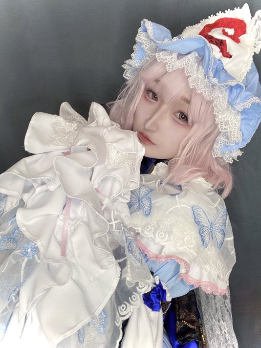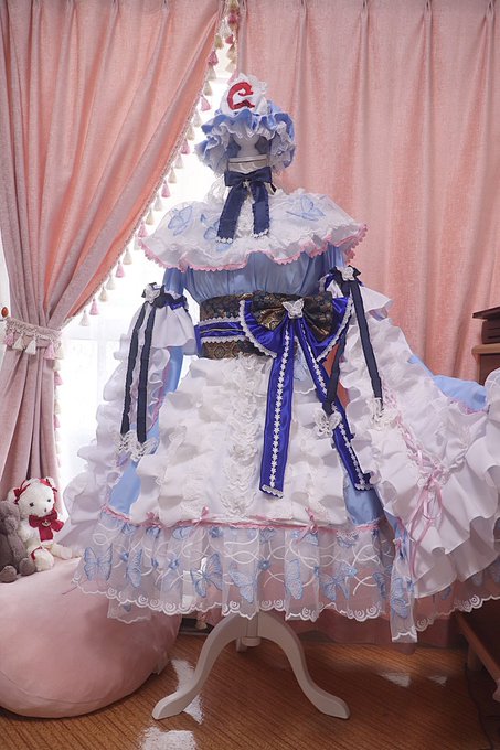 東方project/西行寺 幽々子(アレンジ衣装) 亡霊なのでふわっとした雰囲気に仕上げました🤍🌸🤍 蝶のチュールレースやレースブレード、帯に金襴使ったりと材料探すのも作るのも楽しかった☺️ 袖もぶわっとさせたので着ると楽しい🤗 #温泉こうもり