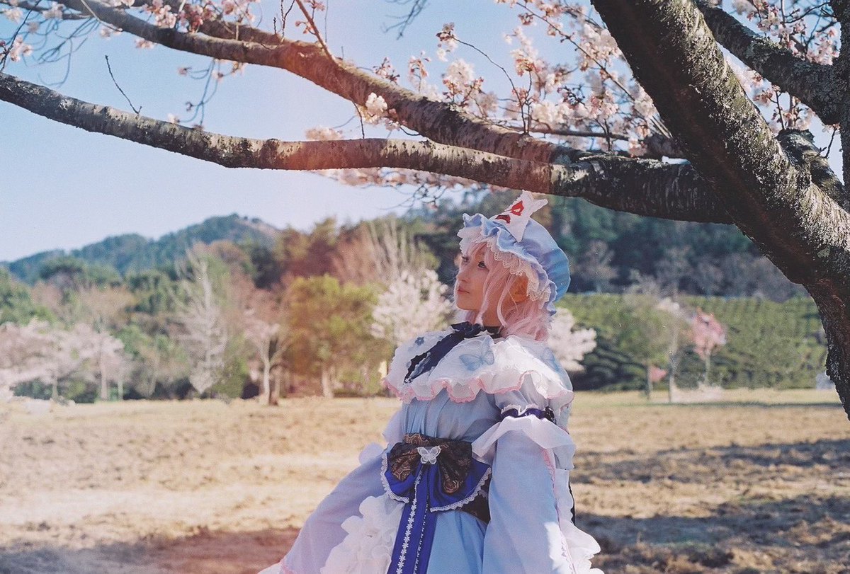 31 102 東方project/西行寺 幽々子(アレンジ衣装) 🌸桜の下の亡霊少女🌸 フィルムカメラで撮ってもらったので光漏れがいい感じ✨ 1枚目がふわっと浮いてそうな感じでとてもすき🤍 撮影📷みいたん先生 衣装👗温泉こうもり 22/04/06 20:41