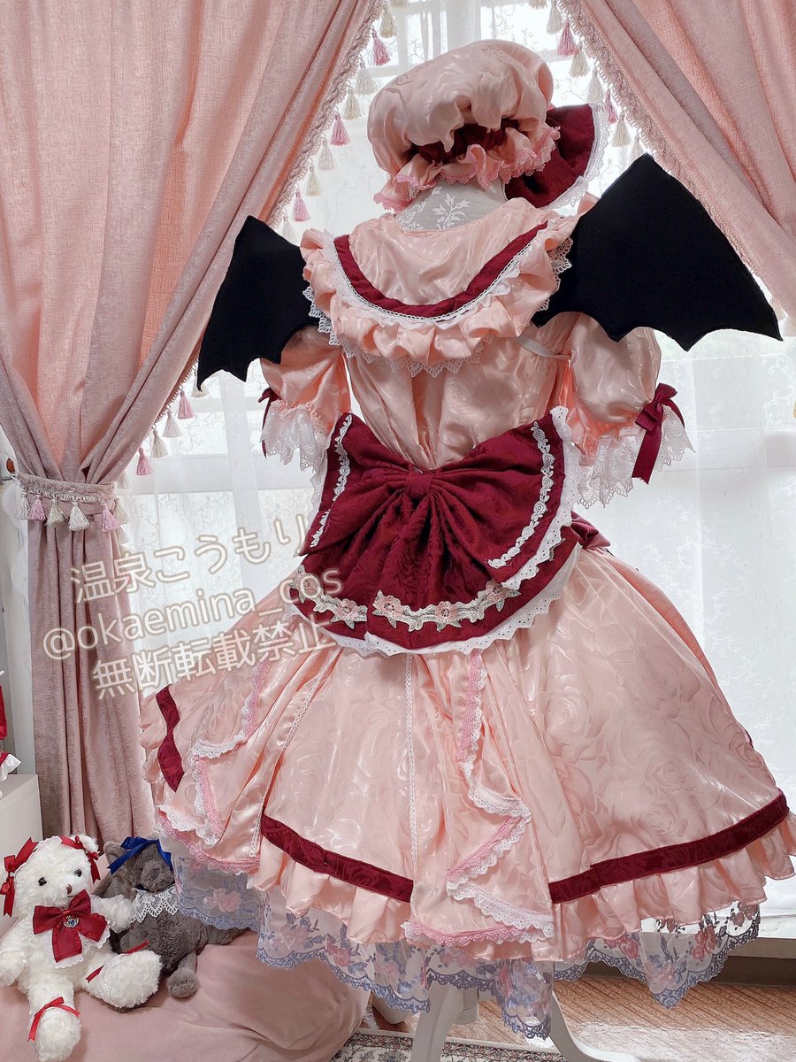 東方project/レミリア・スカーレット(アレンジ衣装) レミちゃんがお庭やお茶会で着てたら可愛いなと思いながら製作しました🫖🧁 歯が染みる程の甘々テイストなドレスです🤍🎀🤍 甘々テイストフランちゃんも製作中です☺️ #温泉こうもり