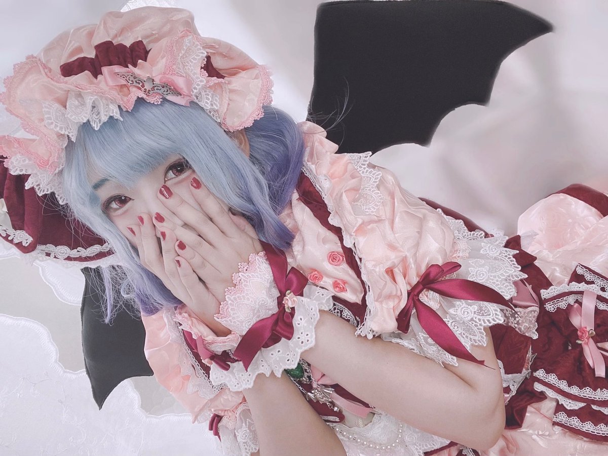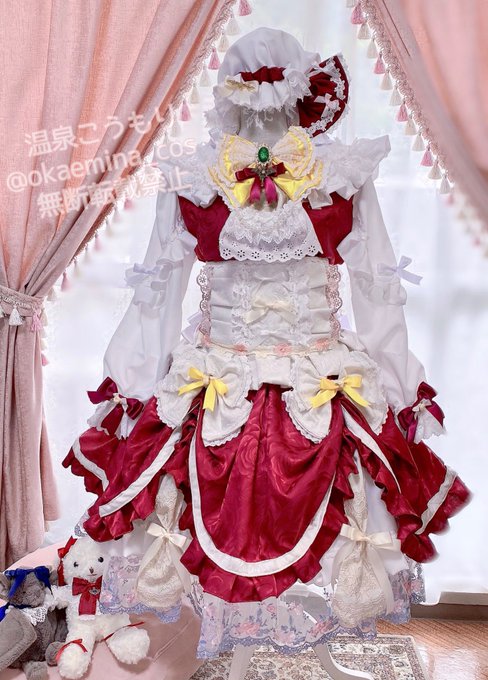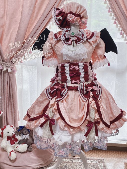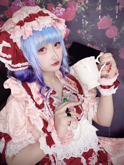 50 215 東方project/レミリア・スカーレット(アレンジ衣装) レミちゃんがお庭やお茶会で着てたら可愛いなと思いながら製作しました🫖🧁 歯が染みる程の甘々テイストなドレスです🤍🎀🤍 甘々テイストフランちゃんも製作中です☺️ #温泉こうもり 22/06/18 17:57