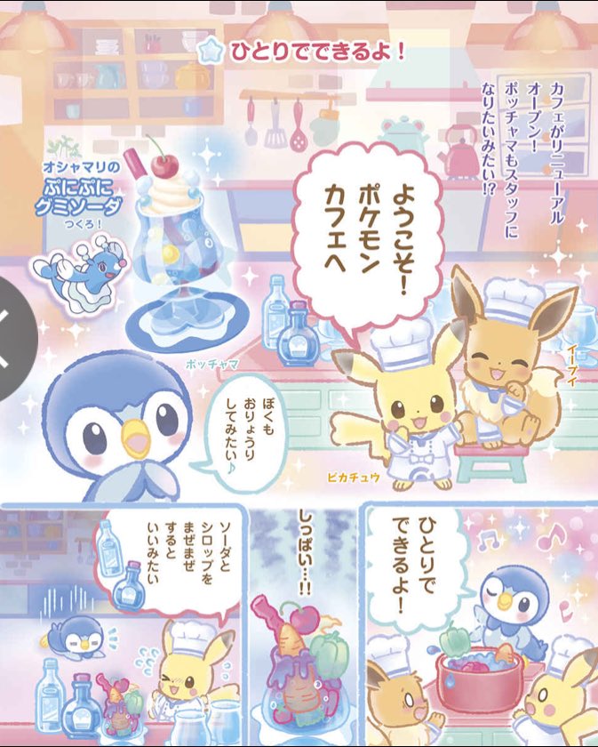 🍮ようこそ!ポケモンカフェ ピカブイのまぜまぜアラモード☕️ ゲーム『ようこそ!ポケモンカフェ~まぜまぜパズル~』の世界をまんが化したぷっちぐみ連載、絵本になって3月9日発売です✨可愛すぎる再現レシピも収録されます🥞 shogakukan.co.jp/books/09725146