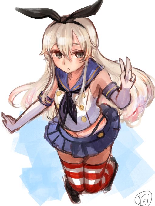 58 117 #艦これ版深夜の真剣お絵描き60分一本勝負 #艦これ版真剣お絵描き60分一本勝負_20190425 三日月!ポーズ模写しました 19/04/25 23:48