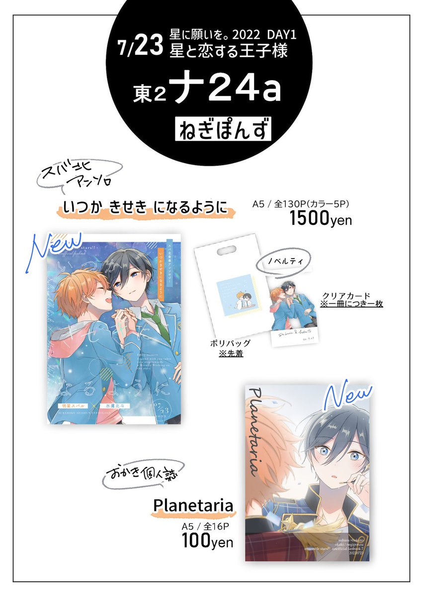 新刊のお知らせ🌟 東6ら10a ねぎぽんず 『Shooting Star』 CDサイズ/34頁/1000円 2人のアルバムイラスト集です🧡💙 CDケース、帯、OPP包装した状態での お渡しとなります! 通販も予定しております♪ サンプル↓ pixiv.net/artworks/10769…