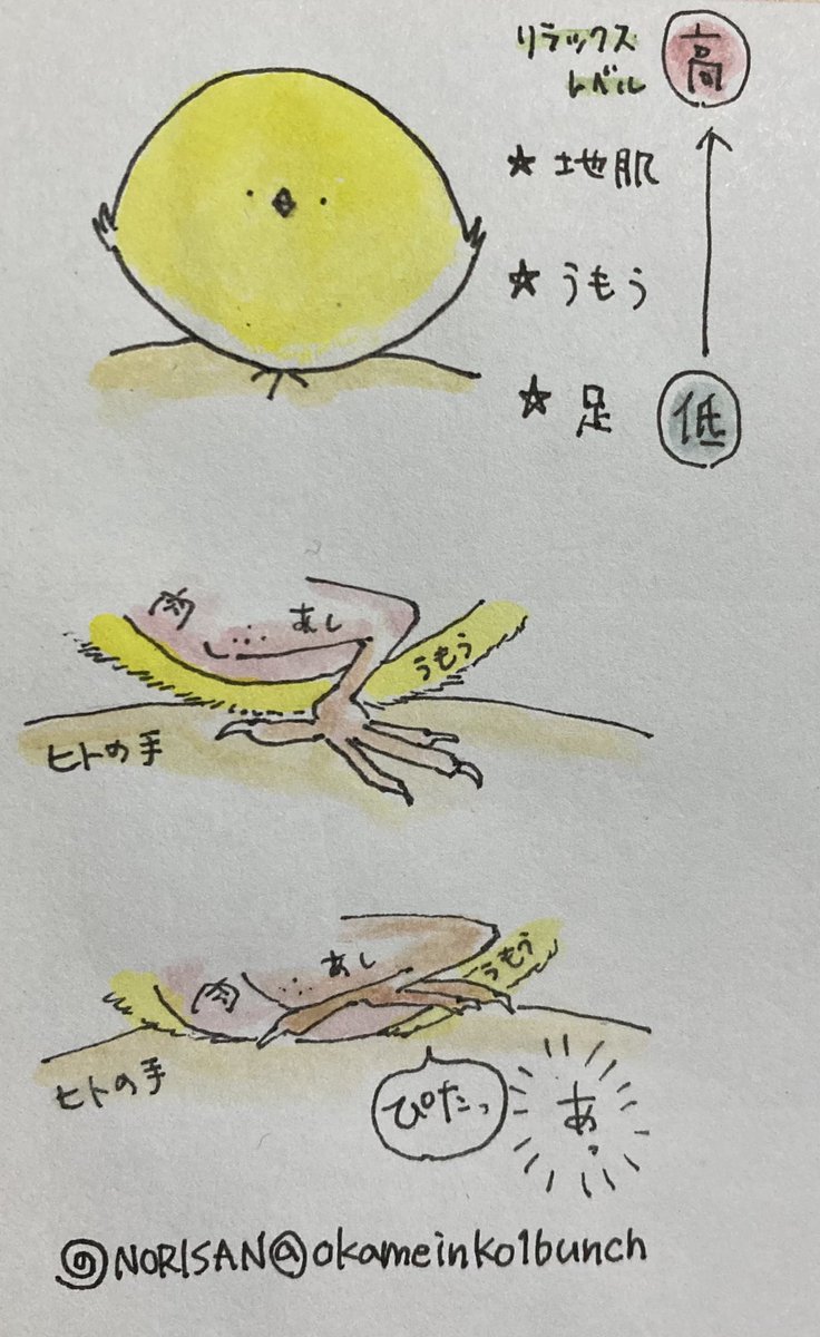 これは鳥に座られた人にしか分からないんですけど、すごくリラックスするとベタ座りするから地肌を感じるよね、と言う話…アッ普通の人は深く考えないでください🤣 #1日1レモンちゃん #カナリヤ #カナリア #NORISAN #illustration #マニア向け