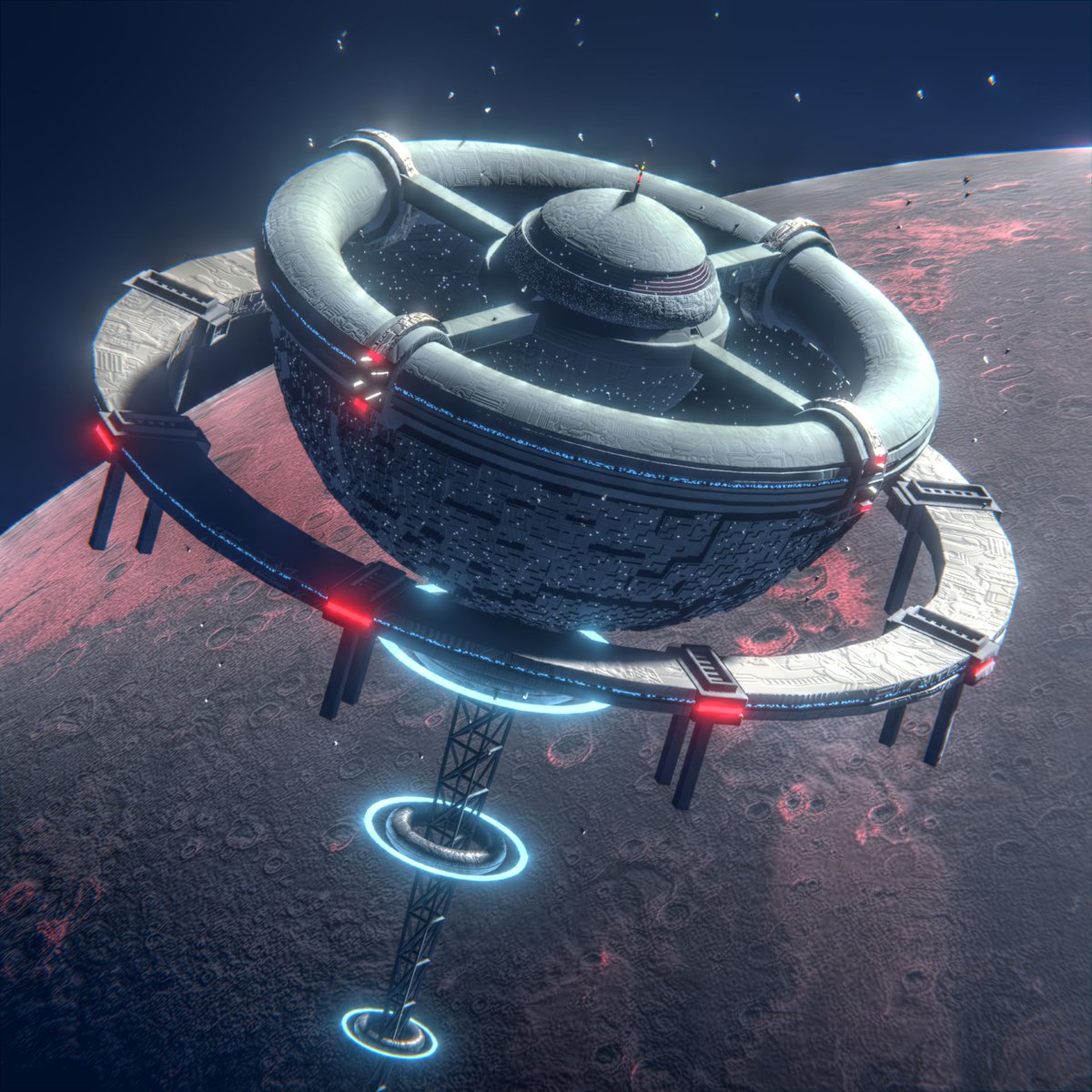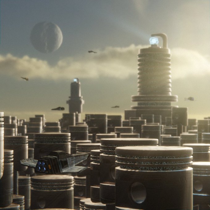 #inktober #blender Day 9 - Nest Before the big cataclysm that wiped the resources of the planet G-3487H, the inhabitants set up a series of orbital refugees to live. "The Nest" is one of them, built in the year 2xx8, currently houses an estimate of 583m people. #Blender3d