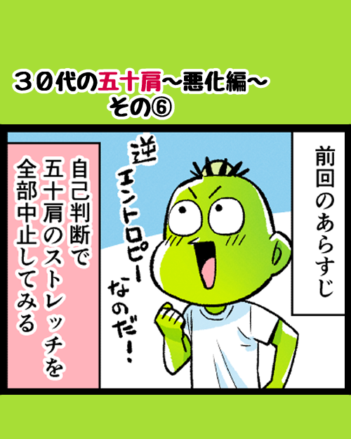 【30代の五十肩~悪化編~その⑥】 逆エントロピーとか言い出したよ…こいつ。 #漫画が読めるハッシュタグ #五十肩 #リハビリ 🍊🍊漫画は【ほぼ毎日】20時更新🍊🍊 ブログに先読み分もあるよ!