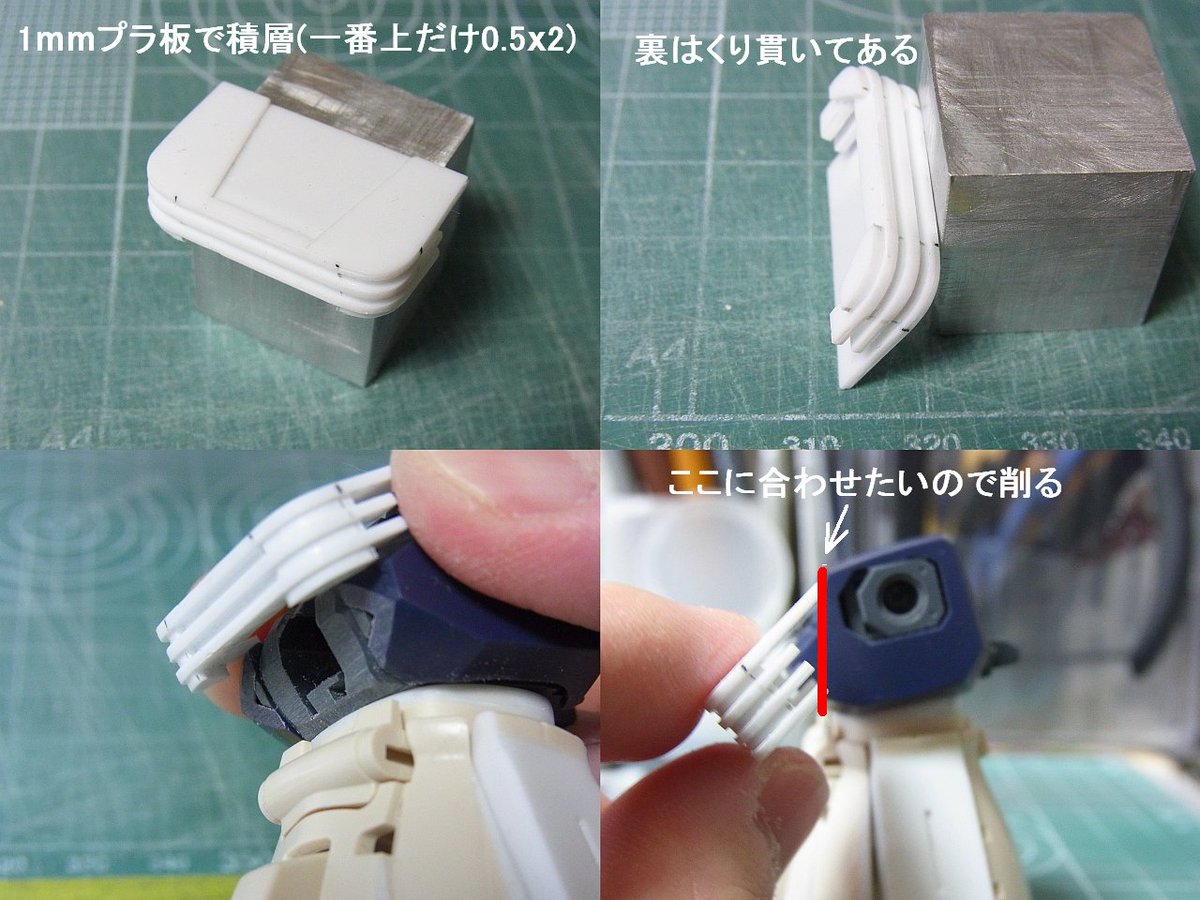 F2デザクのシールド。 プラパイプの中はリーマーでちょっと拡げてます。 ポリキャップはPC-001の2とかの丸いやつ。 使ってない板は上のカバーに使います。 #06D