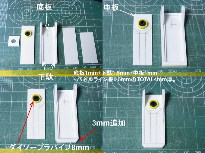 0.5mmプラ板で挟んだ中央には4mmプラ棒が入ってます(´ω`) サイド作らんと。 #06D