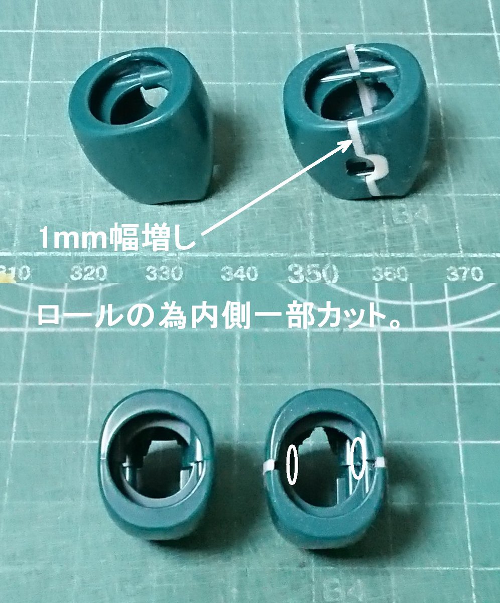 デザクの足。 マリナーの足は膝が曲がってるのでかなりカットします。 モモは06Rと同じく内側のピンをカットしてロール出来る様に。 #06D