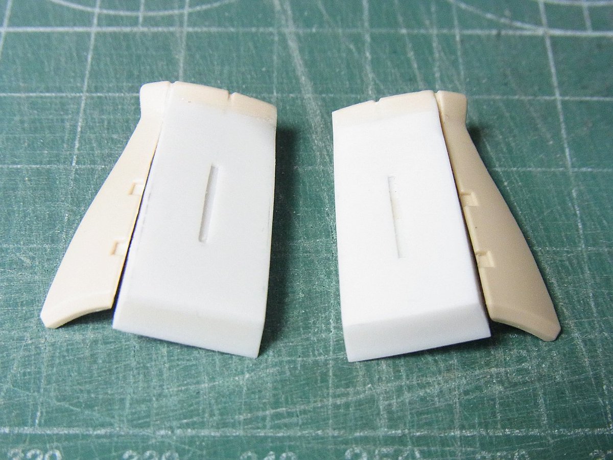 サイドスカート裏の一部をカット、モモに合わせてアーチ状に削り。 フロントもサイド側を幅増しして隙間を調整。 画稿に比べてウエストが細過ぎるんだよねF2。 #06D