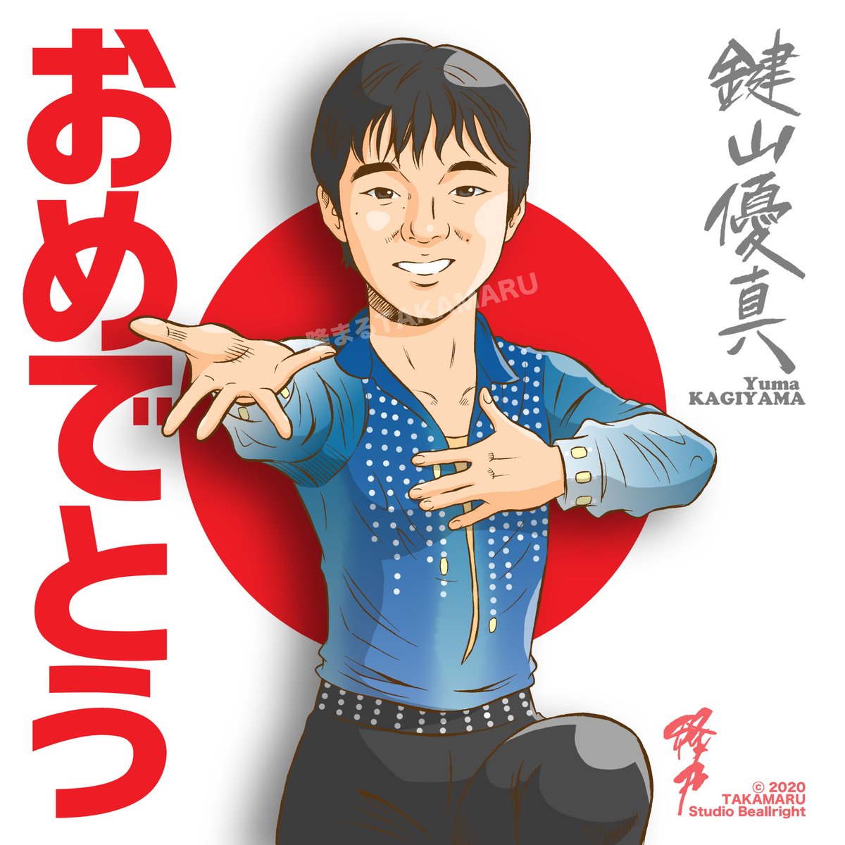 似顔絵ツイート。鍵山優真選手。銅メダルおめでとうございます🥉とても素敵な演技でした。Yuma KAGIYAMA選手。 #figureskate #figureskating #四大陸選手権2020 #4CC2020 #鍵山優真