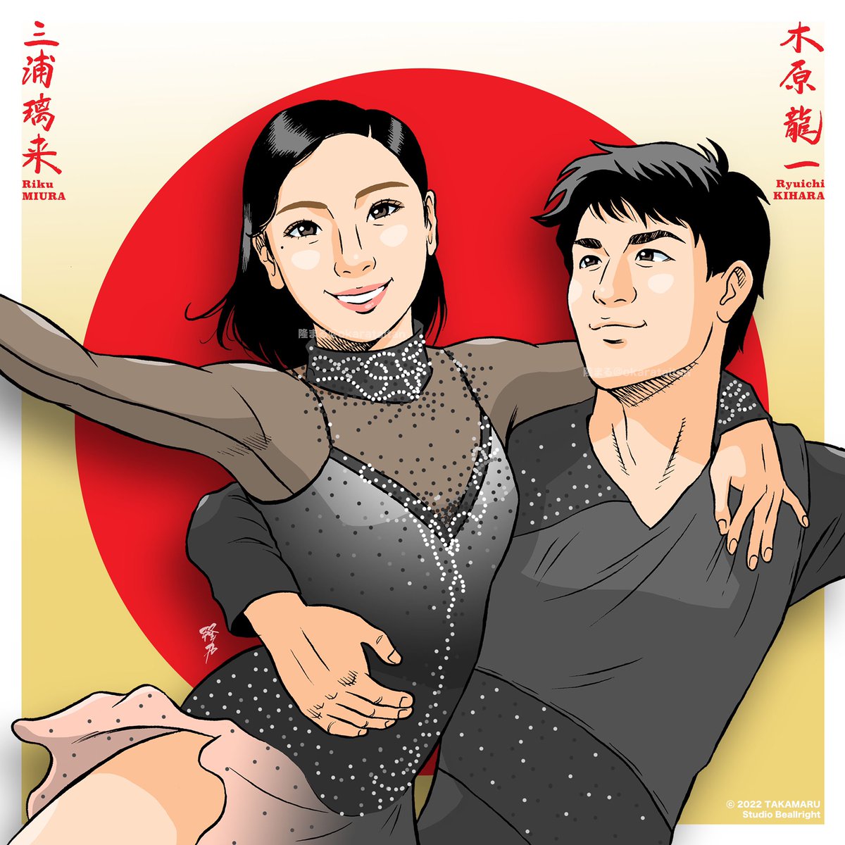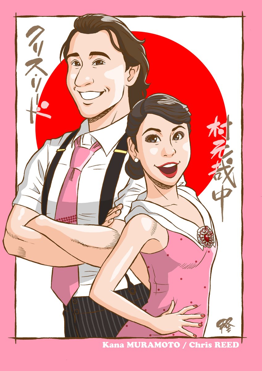 似顔絵ツイート。三浦璃来選手と木原龍一選手。スケートアメリカ2位おめでとうございます🎉とても素敵な演技でした!Riku Miura / Ryuichi Kihara選手 #figureskate #figureskating #pairskating #SkateAmerica2021 #スケートアメリカ