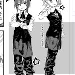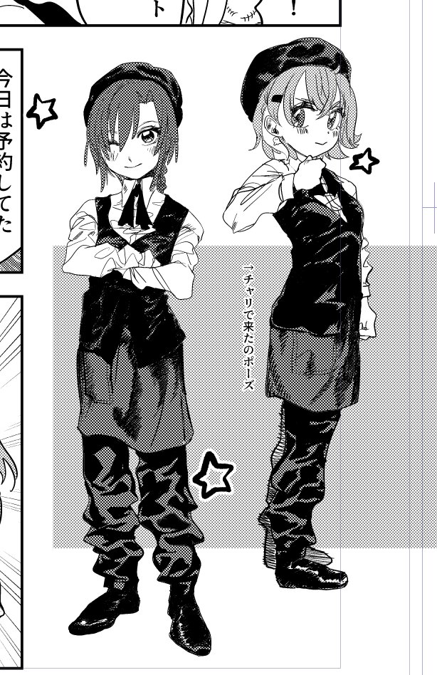 千疋屋の制服を着てる笹木と緑仙。描いてる漫画の1コマ。#笹の絵 #緑仙はやく見ろ