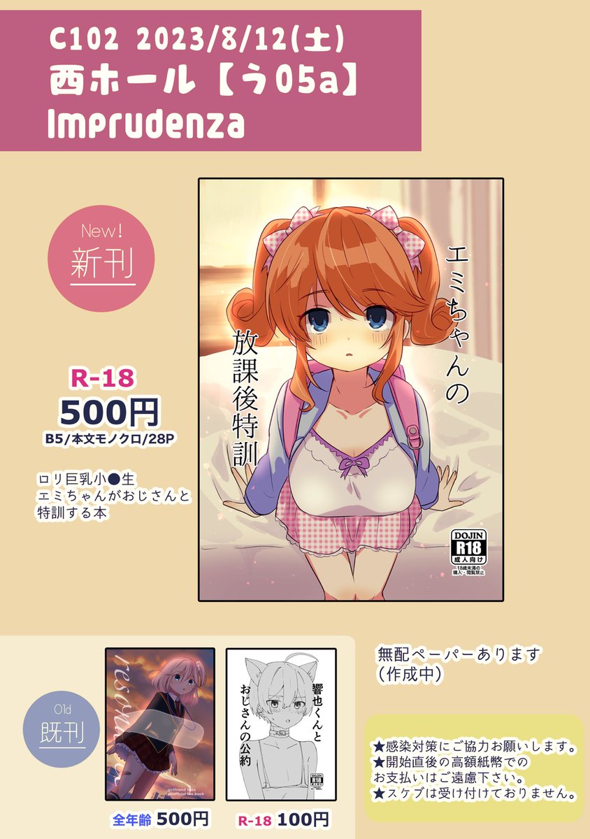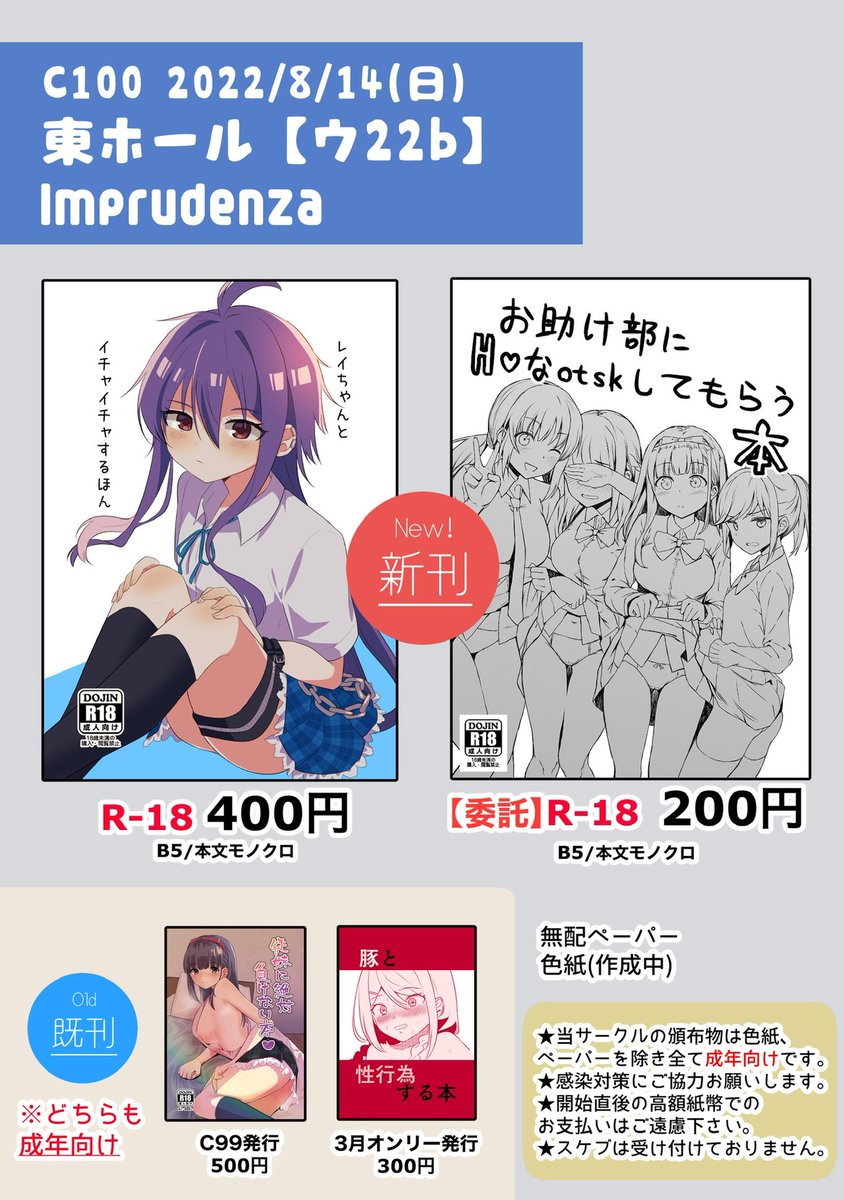 あなたのサークル「Imprudenza」は、コミックマーケット102で「土曜日 西地区 “う” ブロック 05a」に配置されました!コミケWebカタログにてサークル情報ページ公開中です! webcatalog.circle.ms/Circle/Map/173… #C102WebCatalog 受かってましたよろしくお願いします! 新刊がんばって作成中です