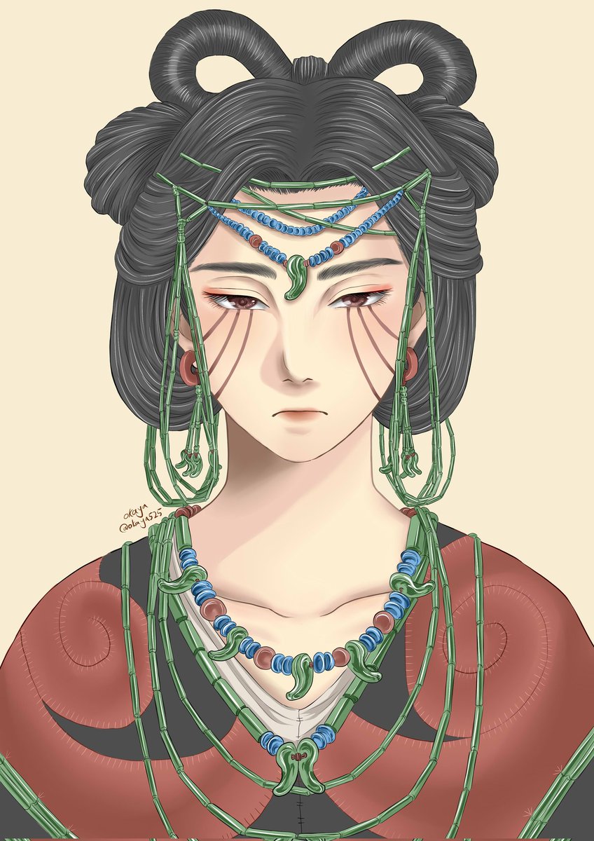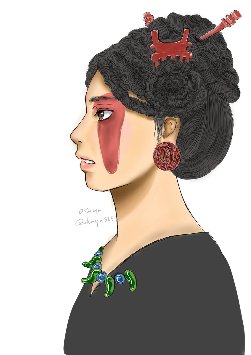 【113枚目】 なで肩の古代人。久しぶりに装飾品描いたら一部すごく小さくなってしまったけど、ロングヘアが描けて満足。お絵描き楽しい☺️ Enjoying drawing accessories(a bit too small tho), long hair and sloping shoulders. #イラスト好きさんと繋がりたい #illustration #古代