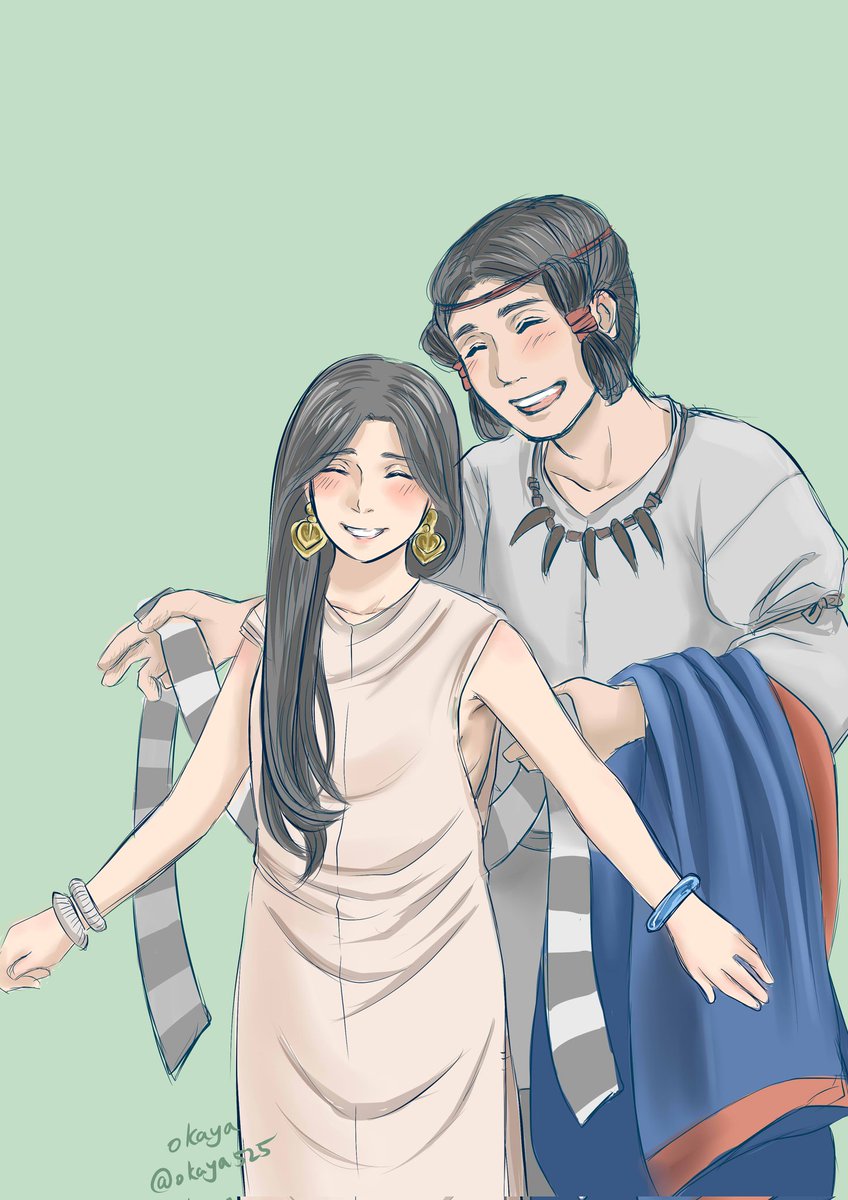 【117枚目】こういう衣装の埴輪が出土しているのですよね…面白い。お絵描きヒャッハー!上達したい! Inspired by a clay figure from the kofun era(400~500AD or CE). Enjoying drawing so much! I want to improve my skills! #イラスト #イラスト好きと繋がりたい #illustration