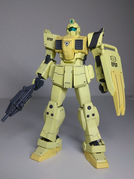 RGM-79R 陸戦型ジム・レイキ 完成いたしました!! 高性能と反応速度向上特化を活かした 強襲を得意とする陸戦タイプのジム (※僕設定の機体性能解説です) もう黄色塗装は吹いてると、 塗料詰まりやすいからお手上げやww (下リプ続く) #ガンプラ #ガンプラ好きとつながりたい #ガンプラは自由だ