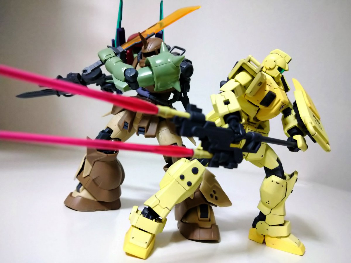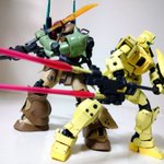 通常サーベルも使用出来ます! 後はおまけポージング いい感じに仕上がったので良かったです 今回ので反省点いろいろあり、接着剤とマークセッタを間違えたのと黄色塗料はしんどかったです…… #ガンプラの画像貼るとRTされると聞いて #ガンプラ好きな人たちと繋がりたい
